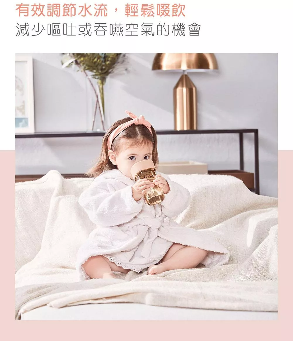 - 360°全方位,輕抿好喝水,有效調節水流,減少吞入空氣與嘔吐機會。