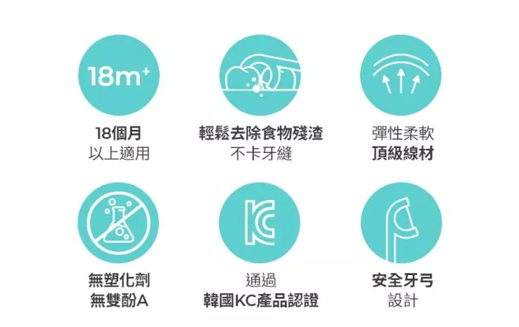 安全牙弓設計,不傷牙齦人體工學寬扁握把設計,握感更舒適