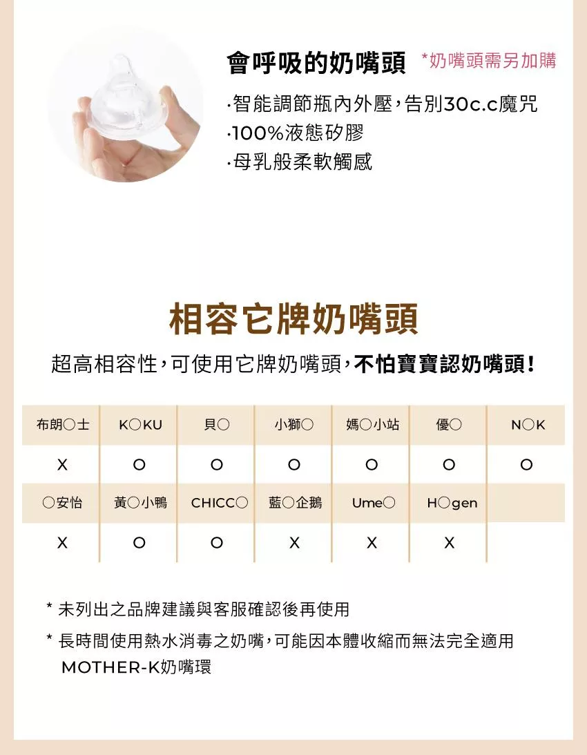 高相容性,可與貝親/小獅王/Chicco/NUK寬口奶嘴通用
