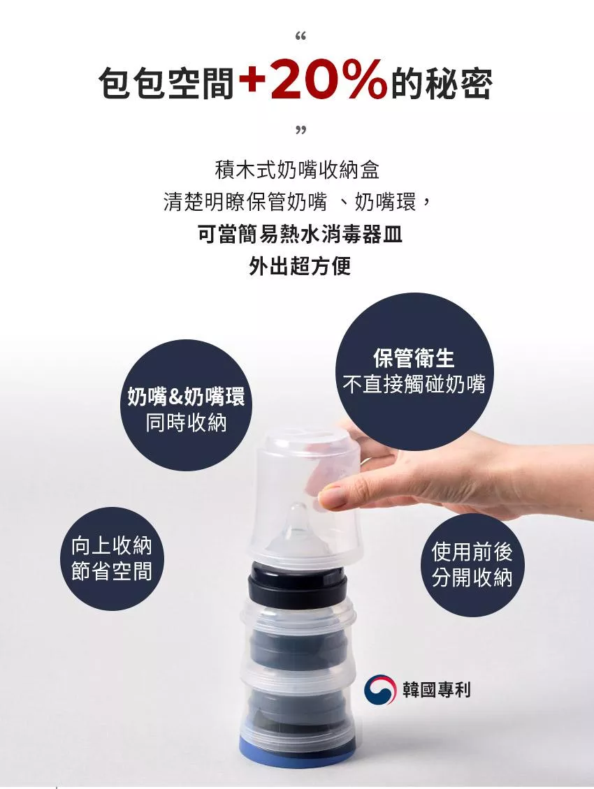 - 保管更衛生, 拿取時不需直接碰到奶嘴頭
