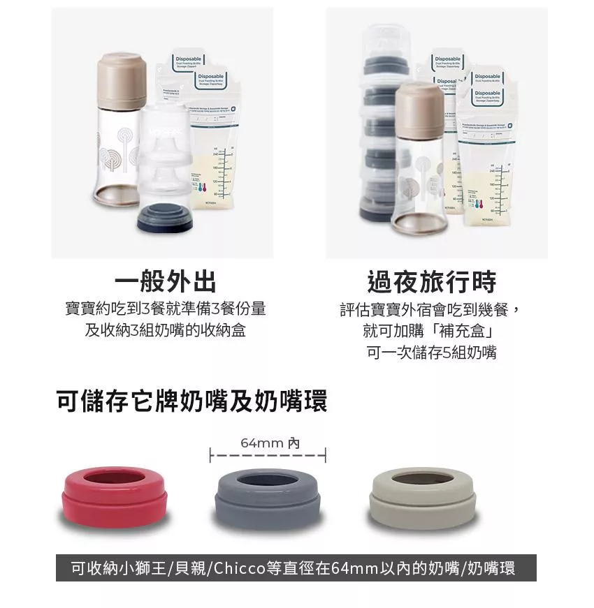 - 同時收納設計(奶嘴+奶嘴環)
