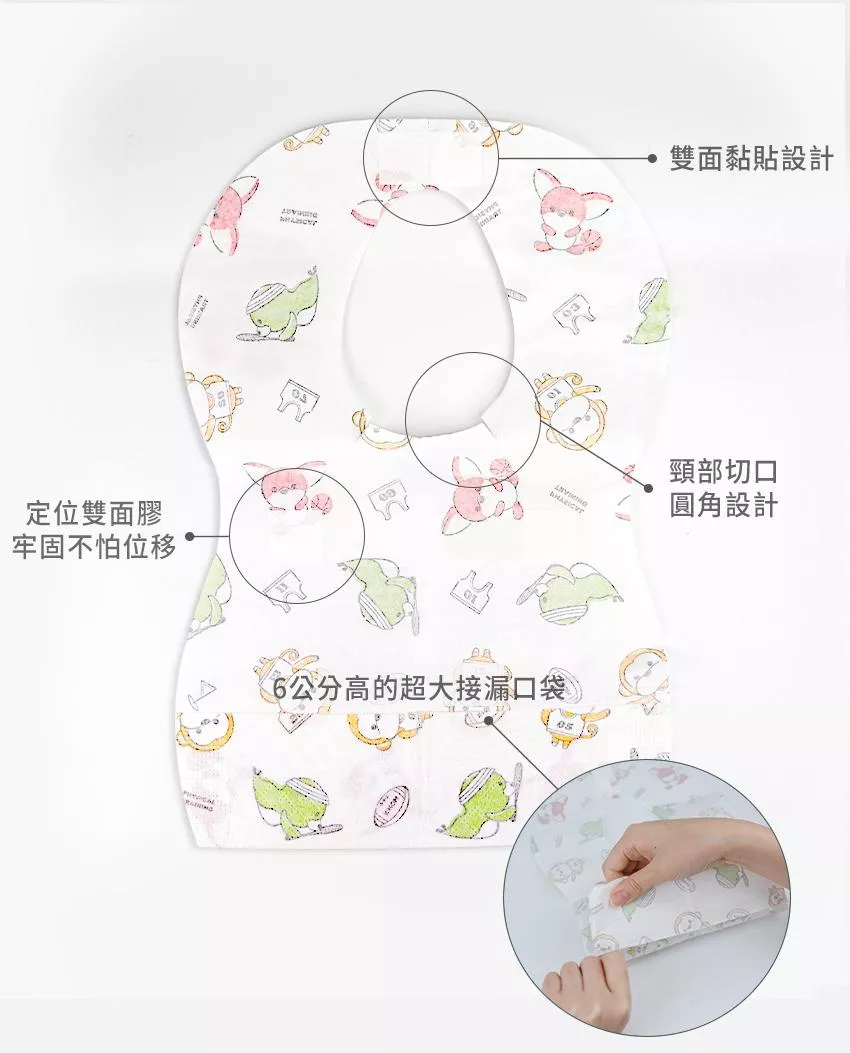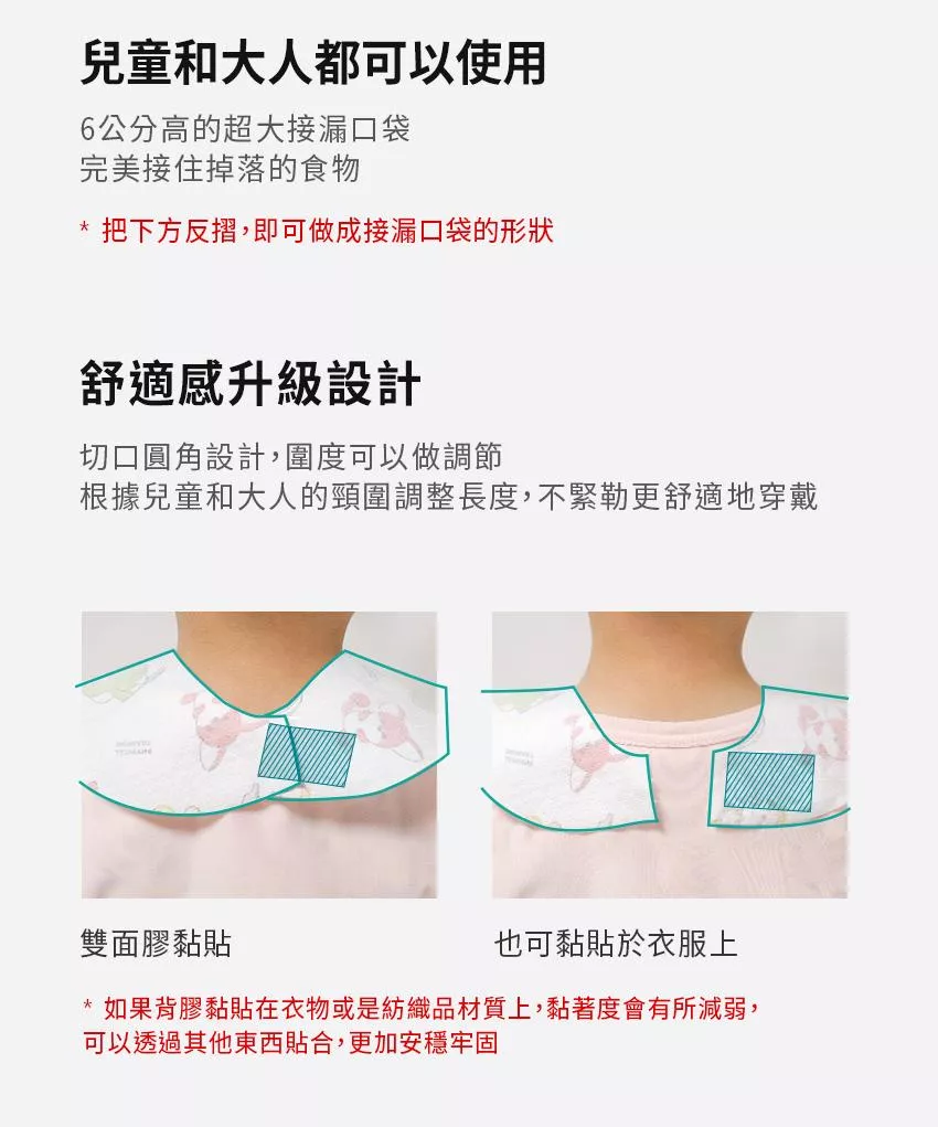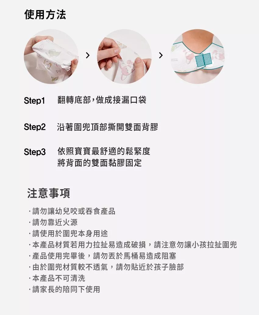 2.沿著圍兜頂部撕開雙面背膠