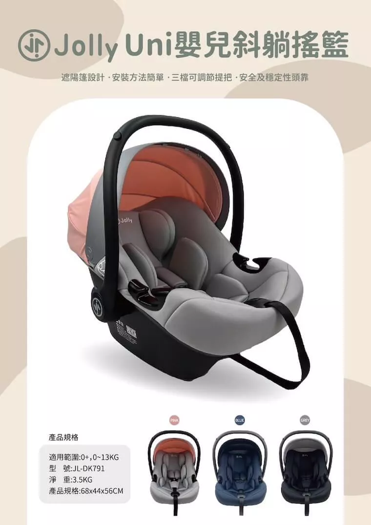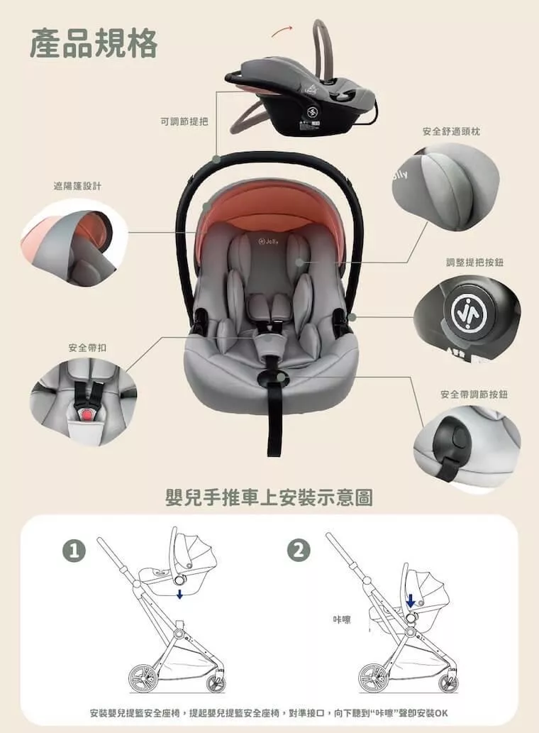 • 斜躺搖籃可與Jolly Soon/matrix嬰兒推車結合,已通過國家檢測中心穩定性檢測,可安心使用。