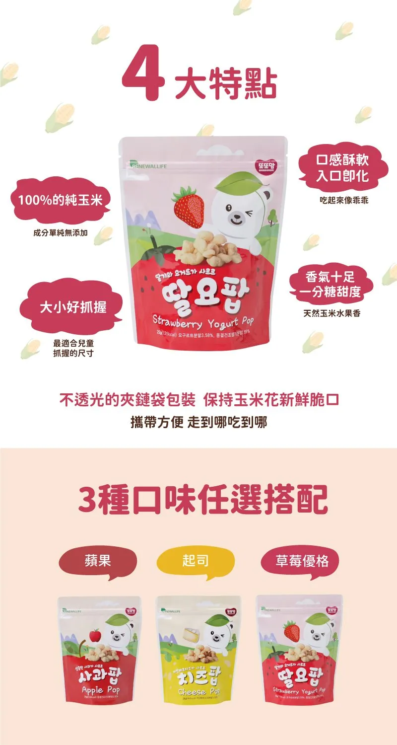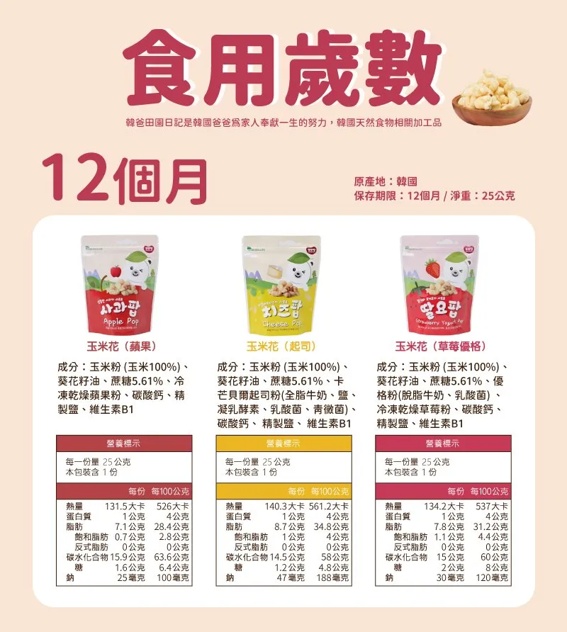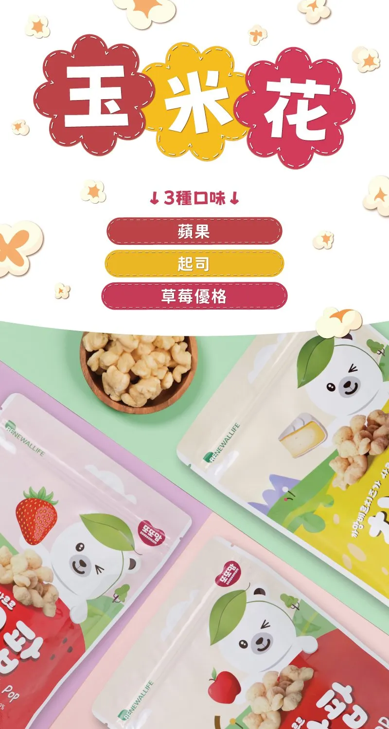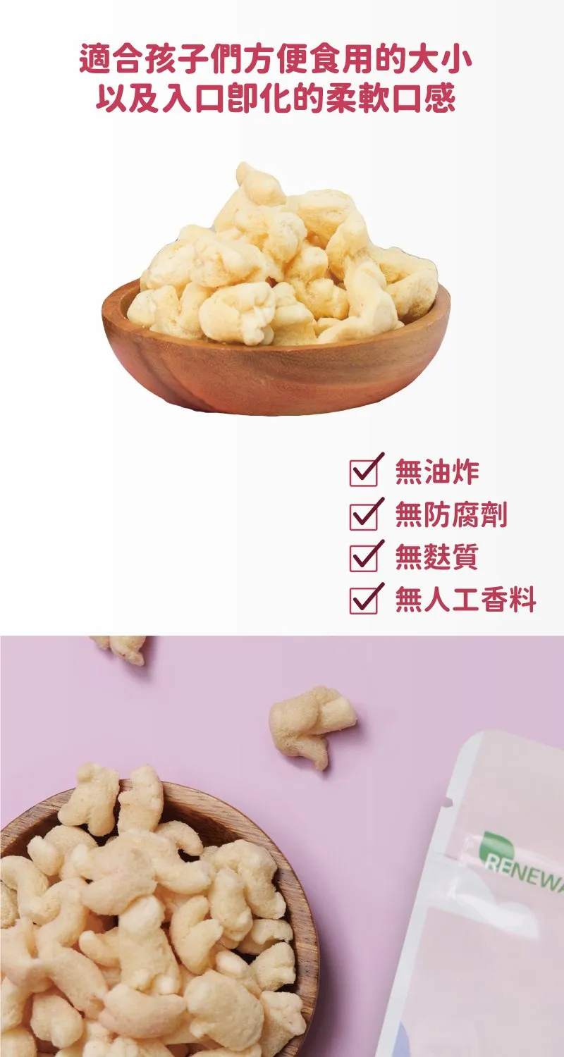 •口感酥軟,入口即化~開袋迎來撲鼻的香甜味,來自玉米和水果粉的天然香味。