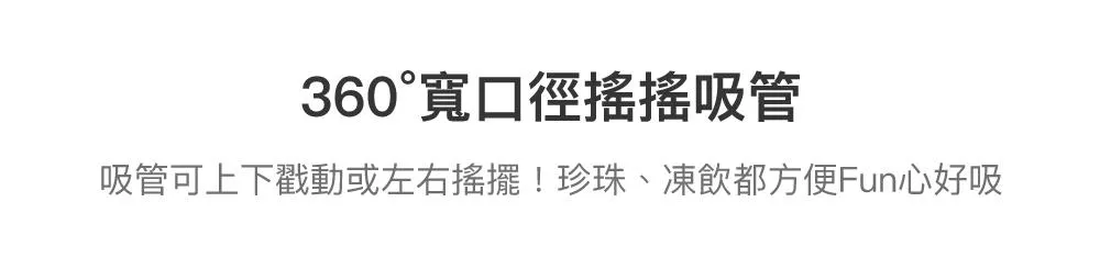 • 360°寬口徑搖搖吸管,珍珠、凍飲都方便能Fun心好吸