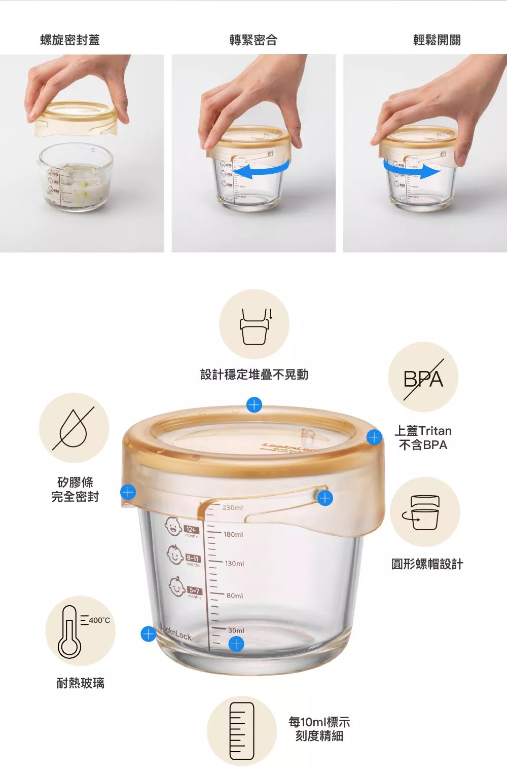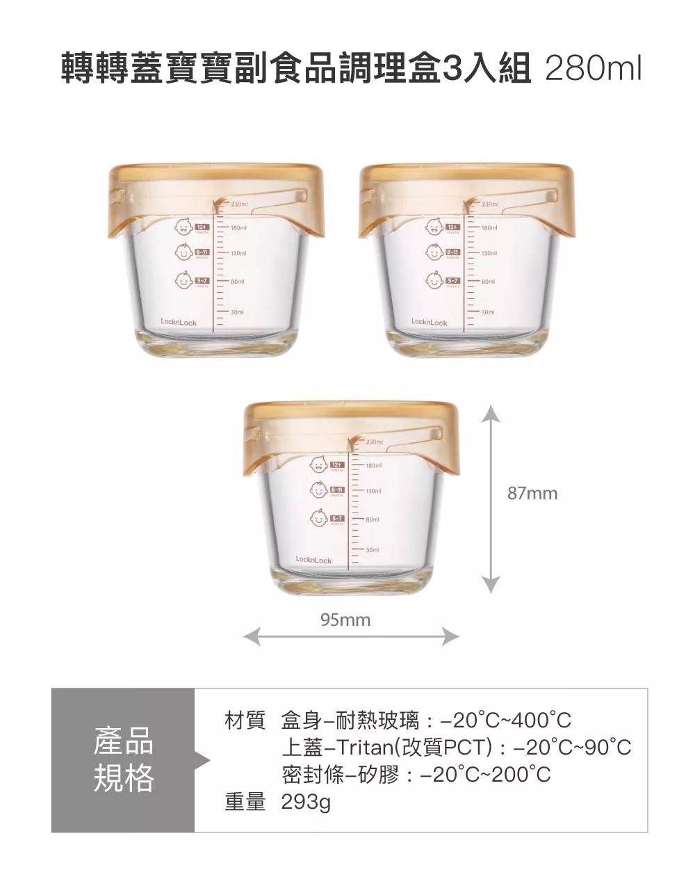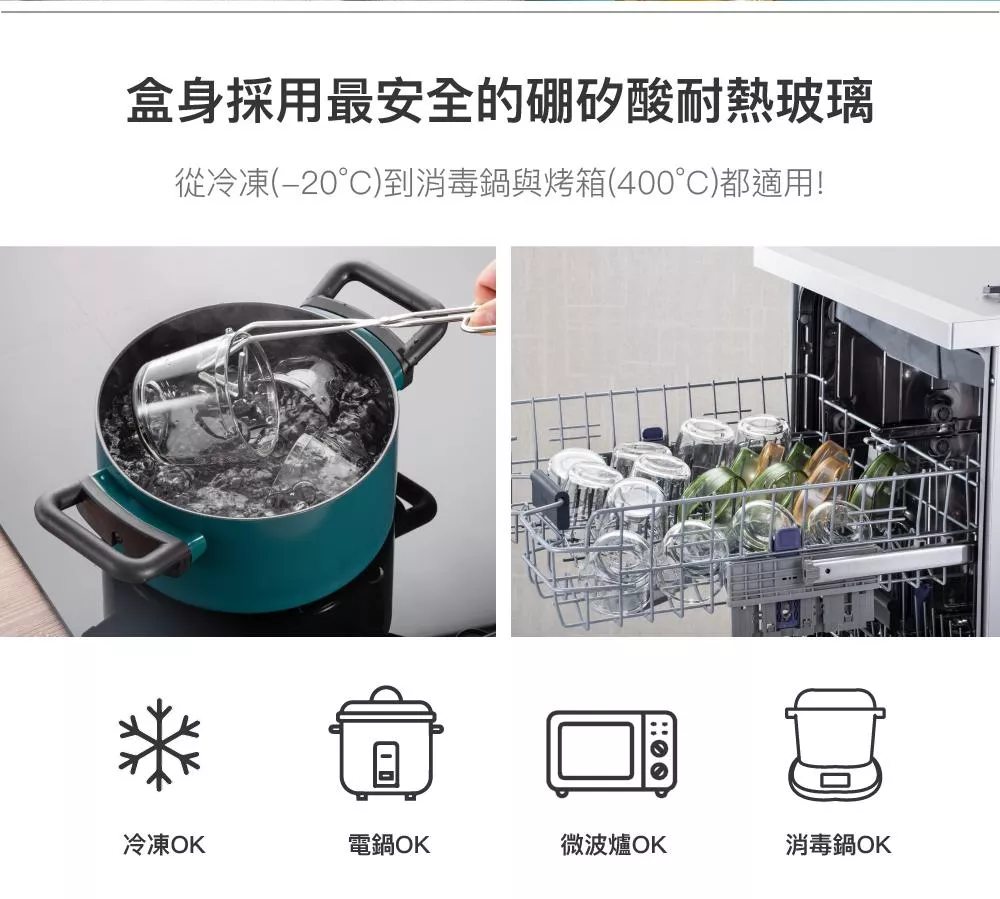 •盒身為耐熱玻璃-冷凍(-20°C)到消毒鍋與烤箱(400°C)都適用!