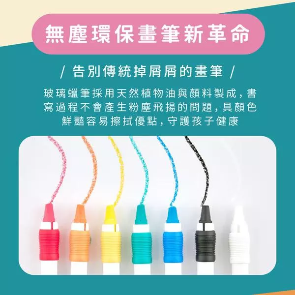但若希望在光滑平面(如: 玻璃 黑板 白板) 的表現特別「顯色」,一律推薦玻璃蠟筆。玻璃蠟筆質地介於水粉筆與蠟筆之間,但不容易起粉塵。
