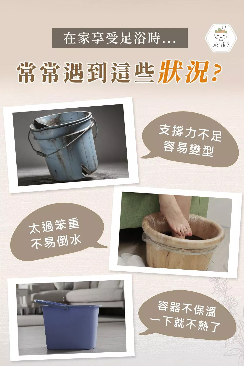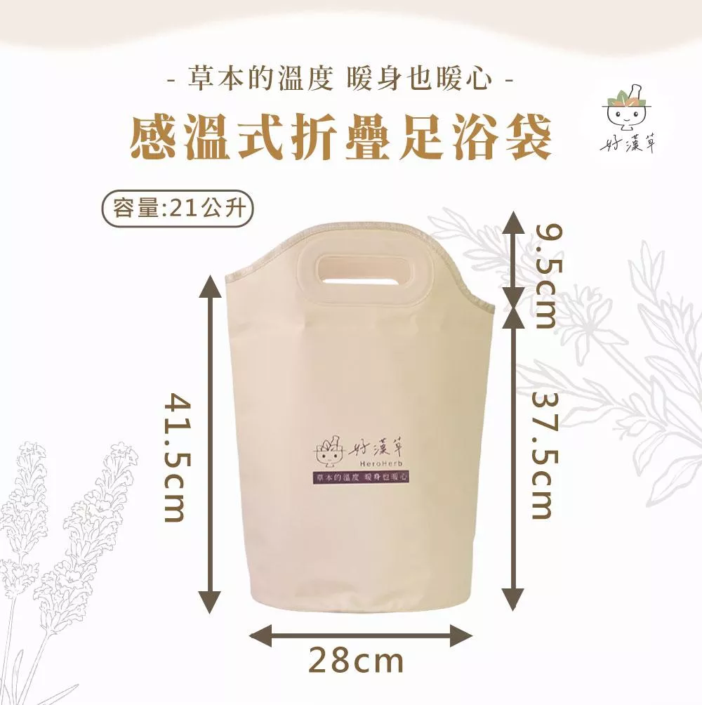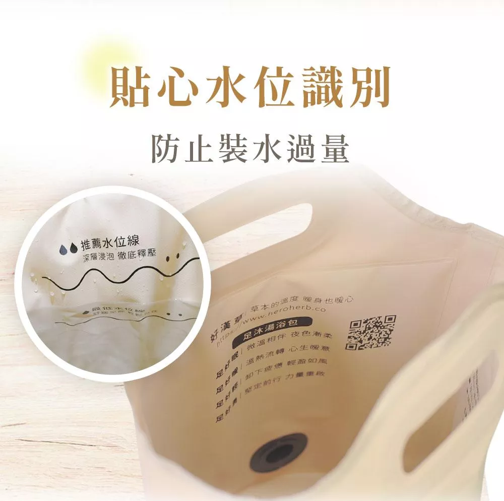 常常不知道泡腳需要多少的水量嗎?好漢草的足浴袋有溫馨提醒適合放鬆泡腳的水位線標示