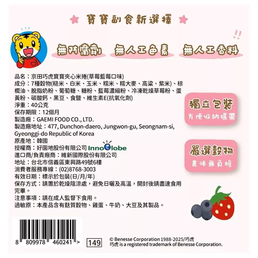 京田製菓 巧虎寶寶夾心米捲