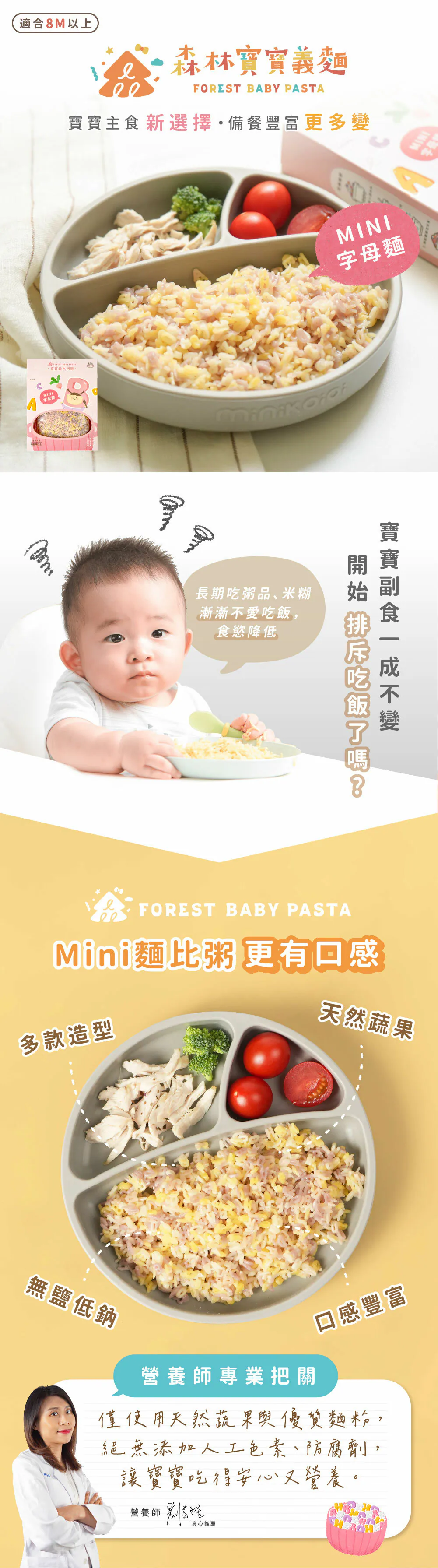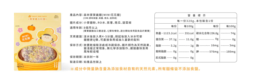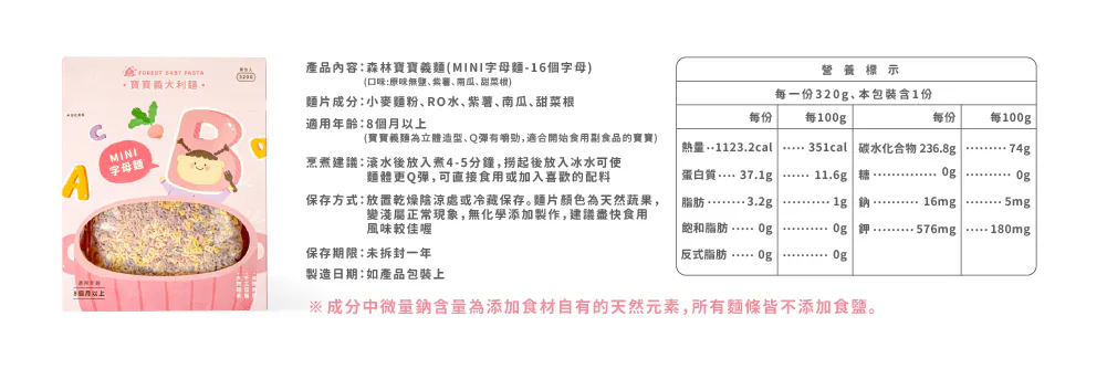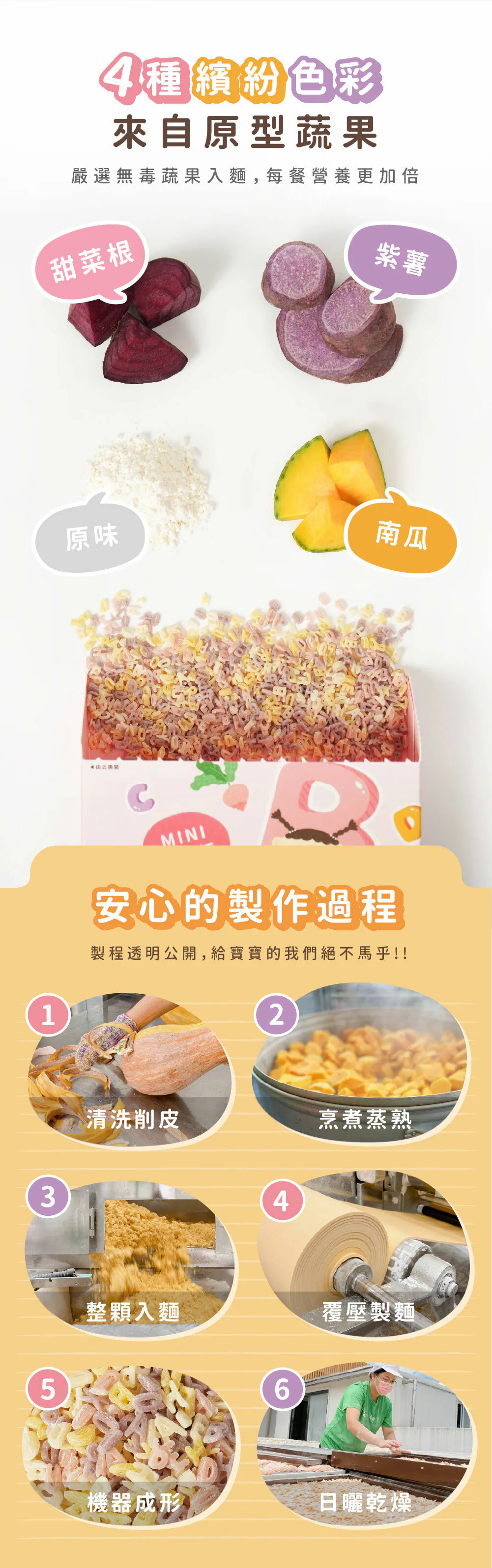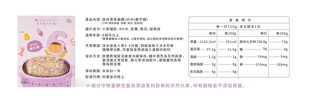 我們的麵麵都是無鹽、無化學添加,讓寶寶可以安心食用!