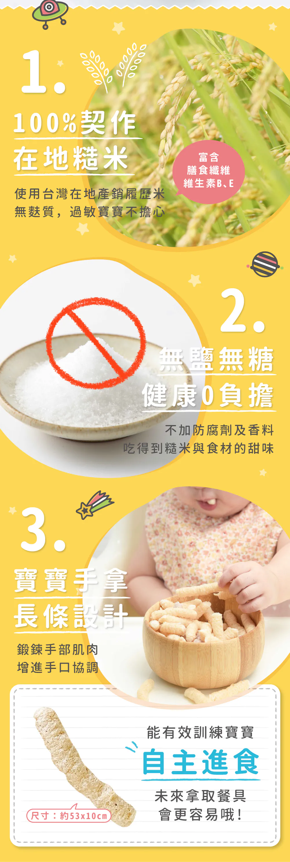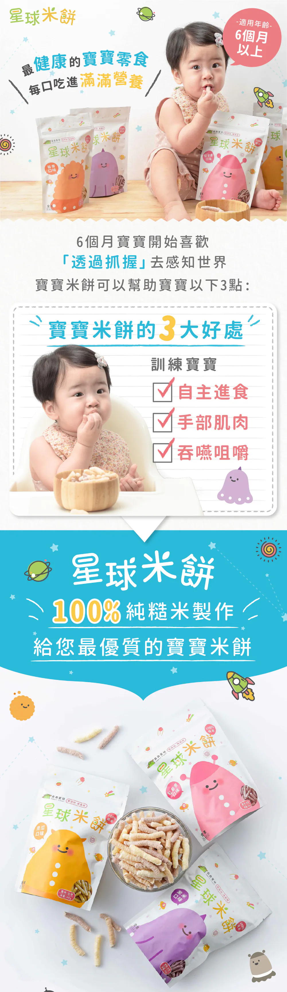 星球米餅吃起來用天然的米香與米甜味,不像一般寶寶點心那樣完全無味唷!