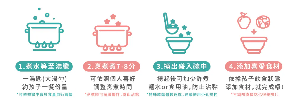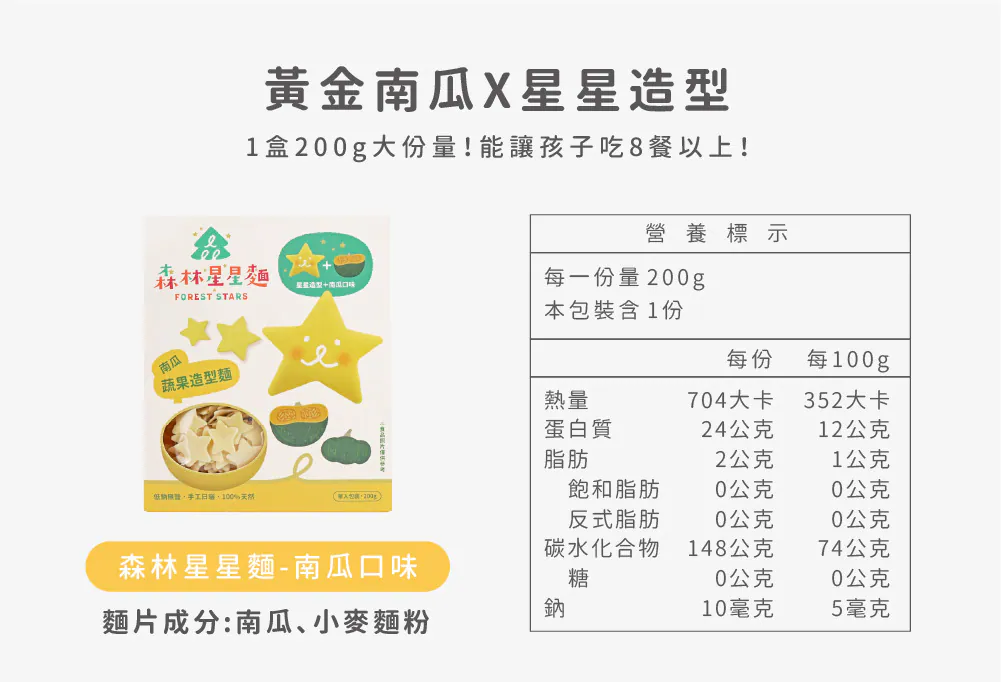星星麵雖然成分與寶寶麵相同,但因麵體大小較適合一歲半以上的寶寶食用唷!