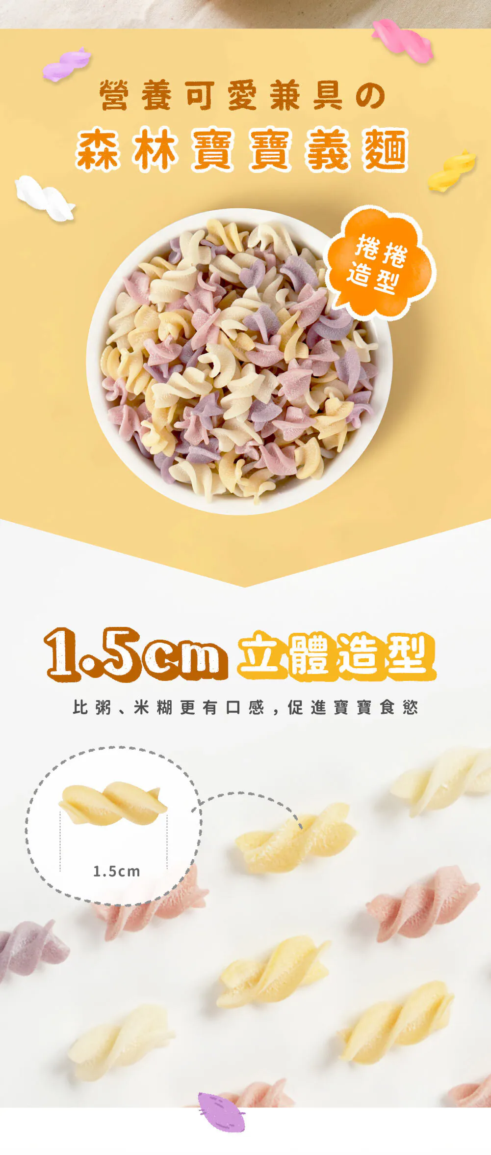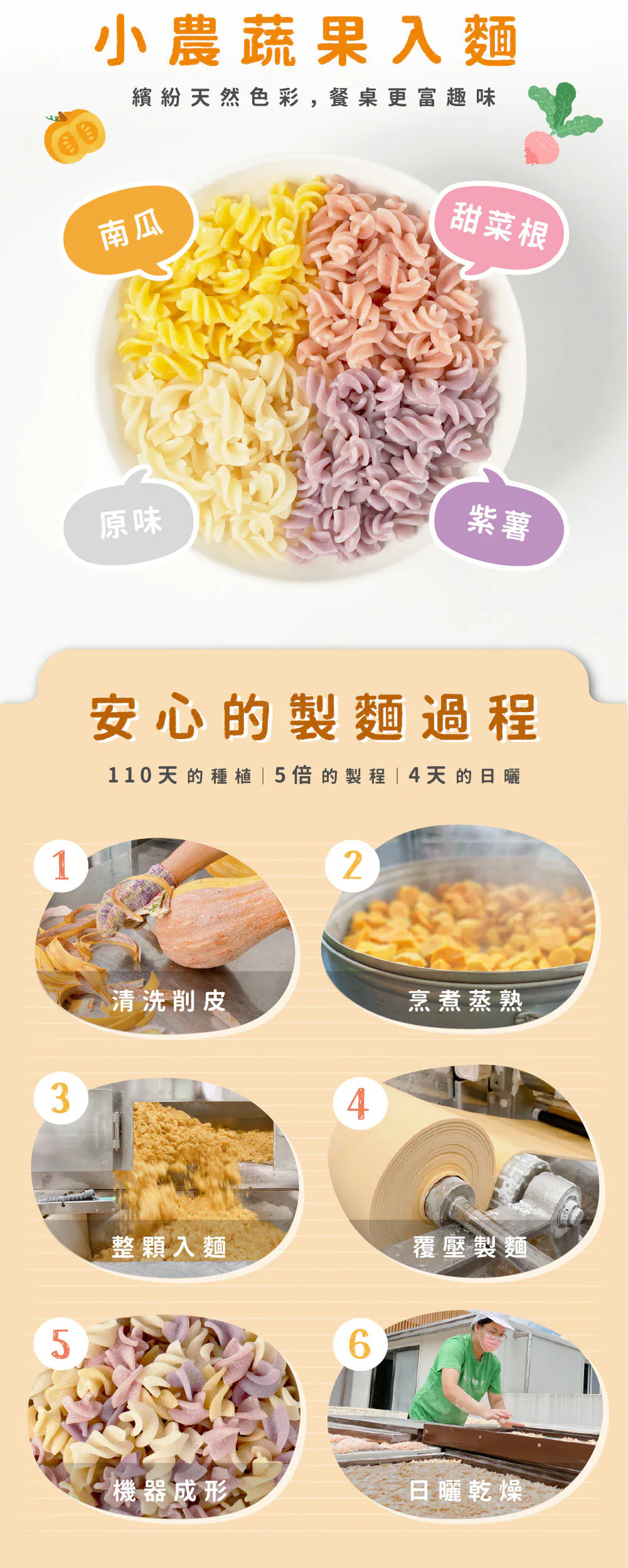 我們的寶寶義大利麵完全使用天然作物調色而成,絕無人工色素、無化學添加、無防腐劑,