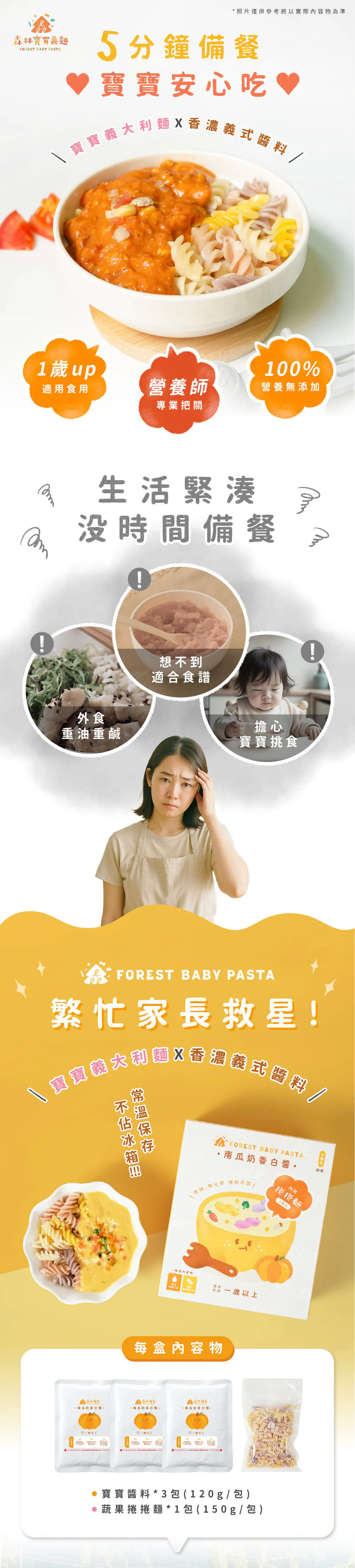 ✔內含3包醬 (120g)+1包捲捲麵 (150g) |約孩子3餐份量