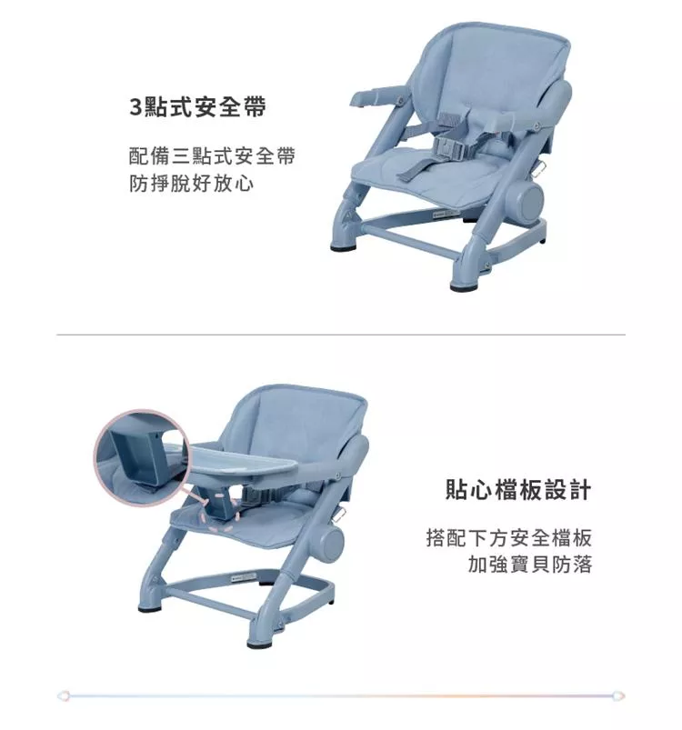 👍獨特Z型骨架,搭配3點式安全帶以及防滑檔板設計,更穩固安全