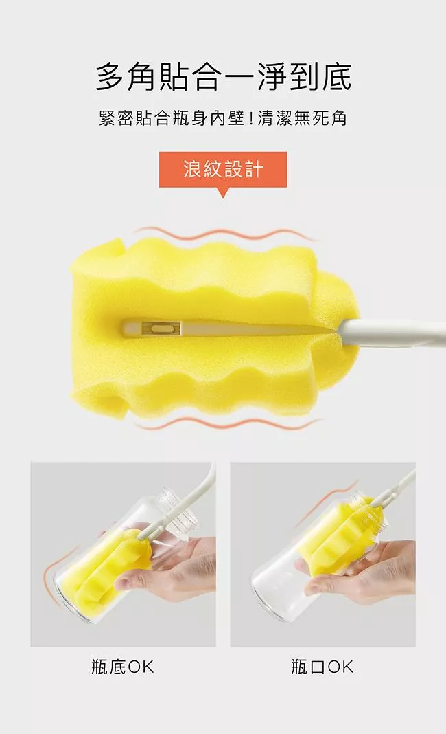 3.浪紋海綿設計,緊密貼合瓶身內壁,清潔無死角。