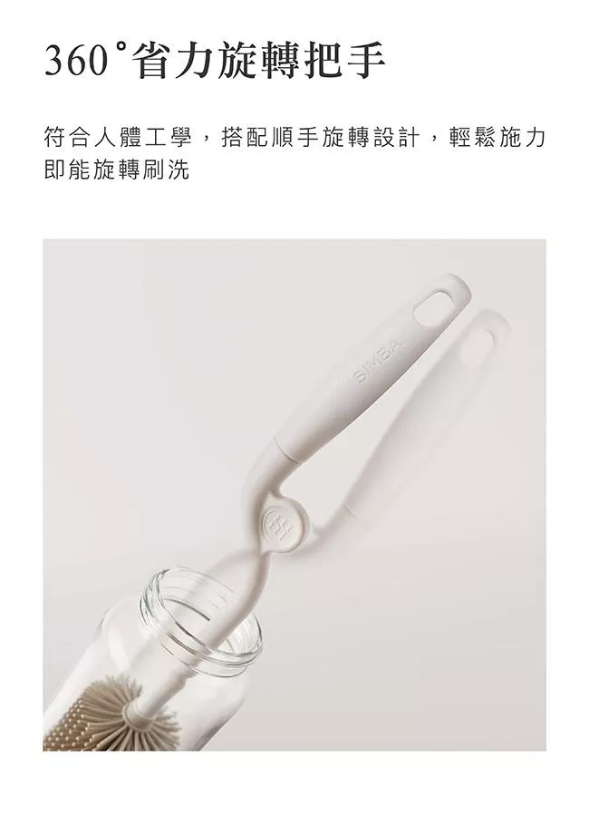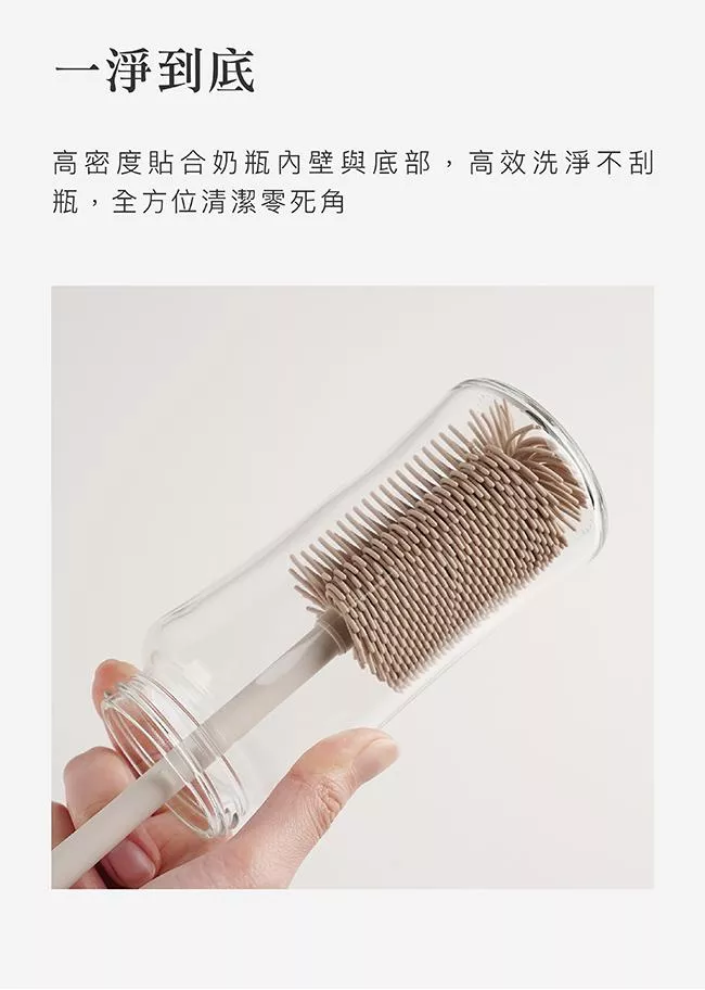 3. 零死角貼合瓶身,輕易將奶瓶內側與瓶底清潔乾淨。