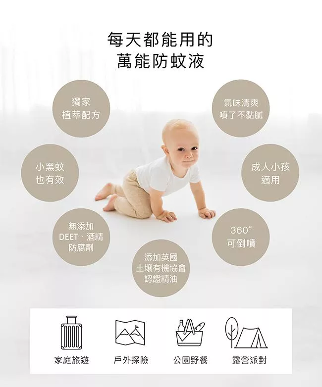 1.無添加DEET、酒精、防腐劑,成人、小孩適用