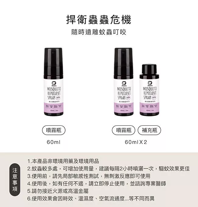 2.蚊蟲較多處,可增加使用量,建議每隔2小時噴灑一次,驅蚊效果更佳