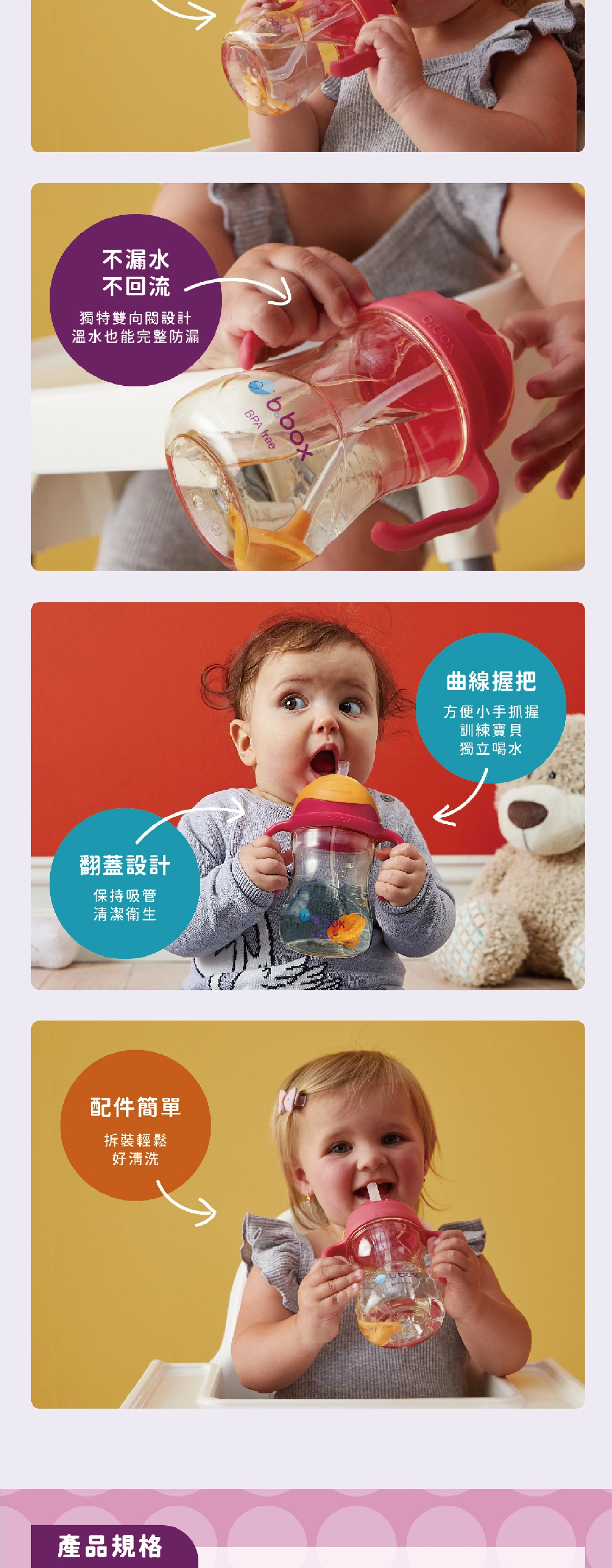 - 為確保幼兒飲用安全,請避免盛裝熱燙的液體