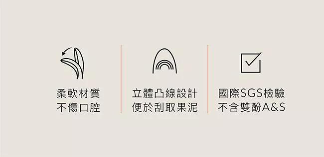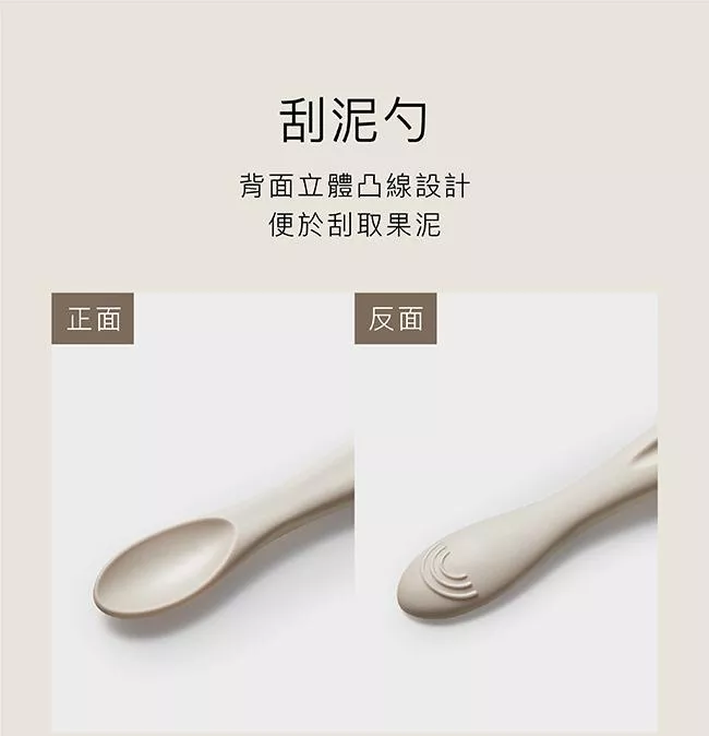 5. 刮泥勺背面立體凸線設計,便於刮取果泥,調理米麥糊等。